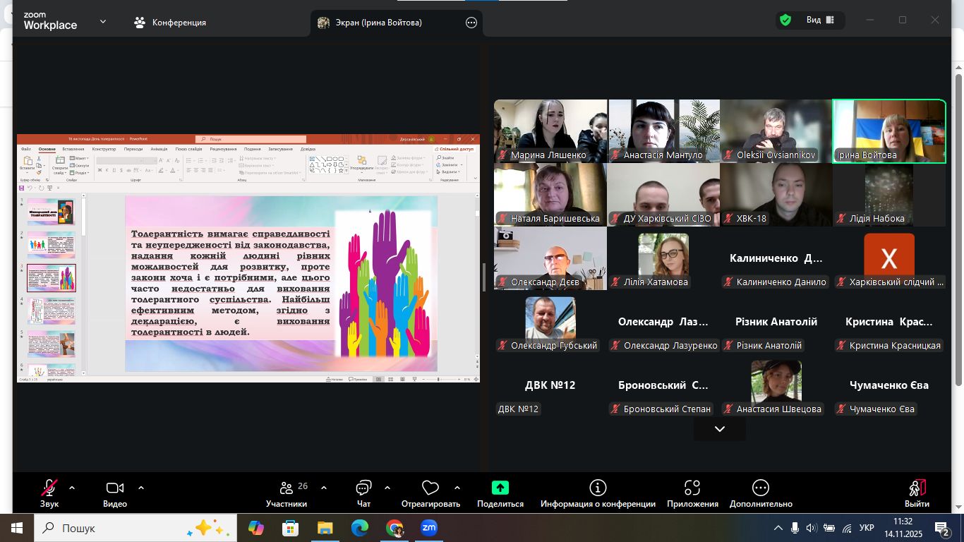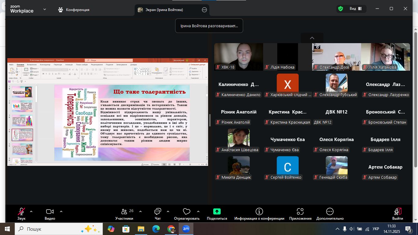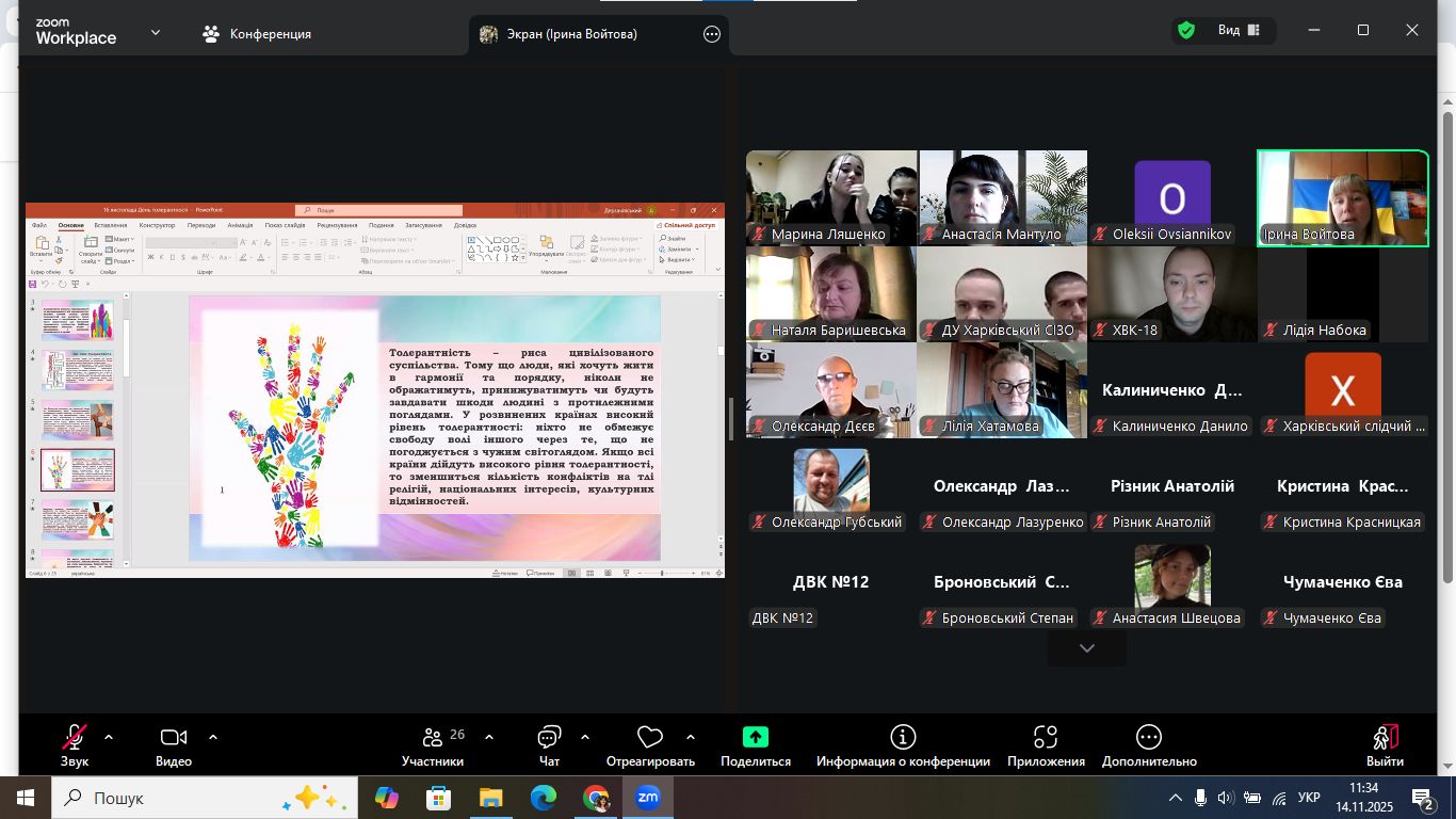 Напередодні 16 листопада, Міжнародного дня толерантності, учні КЗ "Дергачівський ліцей № 4" доєдналися до виховного заходу, який провела соціальний педагог Войтова І. Ю.