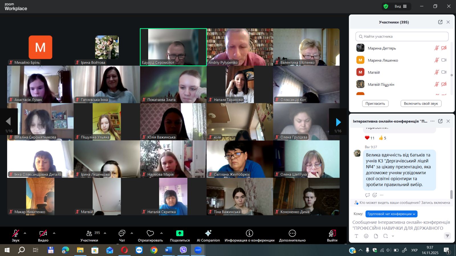 14 листопада учнівська та батьківська спільноти взяли участь у тематичній онлайн конференції «ПРОФЕСІЙНИЙ ОРІЄНТИР «ІНЖЕК +» від Науково-навчального інституту Економіки і права ХНЕУ ім. С. Кузнеця. Учні доєдналися до Майстер класів та тренінгів Кафедр інституту.